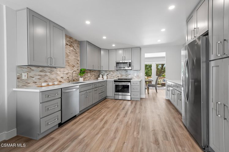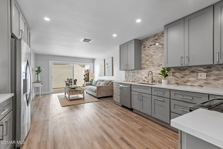 Beautifully Remodeled Turn-Key Townhome in Lakeshore. Welcome to this stunning, move-in-ready townhome nestled in the highly sought-after Lakeshore community, right in the heart of Westlake Village. Perfectly situated on a desirable cul-de-sac, this home offers the ideal blend of style, comfort, and convenience--just steps from one of three swimming pools, a pickleball/paddle tennis court, sand volleyball, a sandy beach, and a private lake dock. Inside, you'll find a gorgeously renovated kitchen featuring quartz countertops, stainless steel appliances, and a spacious eat-in area that opens onto a charming front patio. The open-concept floor plan flows seamlessly with luxury plank flooring throughout the main living areas. A breakfast bar connects the kitchen to the inviting living room, complete with a decorative fireplace. Enjoy serene views of the greenbelt and mature trees from the dining and living rooms, both opening to a peaceful back patio--ideal for indoor-outdoor living. Upstairs are three generously sized bedrooms with vaulted ceilings and abundant natural light, plus two beautifully updated full bathrooms. The primary suite is a true retreat, offering space, comfort, and timeless finishes. Additional features include: • Convenient indoor laundry room with washer & dryer • Detached 2-car garage with added storage • Central location with easy access to the 101 freeway • Located in the award-winning Las Virgenes School District The Lakeshore community offers resort-style amenities and is just minutes from Westlake Village's best attractions, including the Sunday Farmer's Market, Stonehaus, upscale and casual dining, boutique shopping, and scenic walking paths. This is the perfect opportunity to live in one of the most desirable communities in Westlake Village--a wonderful place to call home.